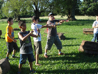 A tardinha,fizemos um lanche partilhado,brincamos e fomos treinar arco e flecha com as profes,esperando ansiosamente pra o espetáculo de SOM E LUZES .