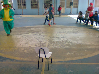 Um dia tivemos recreação a cargo da Diretora Taíse, da Vice-diretora Tatiane, da coordenadora Irani e do Profe Paulo.