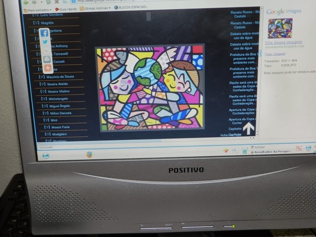 As turmas conheceram Romero Britto através de breve biografia, logo após dirigiram-se à Informática da escola onde consultaram suas obras para conhecer e comentar características presentes.